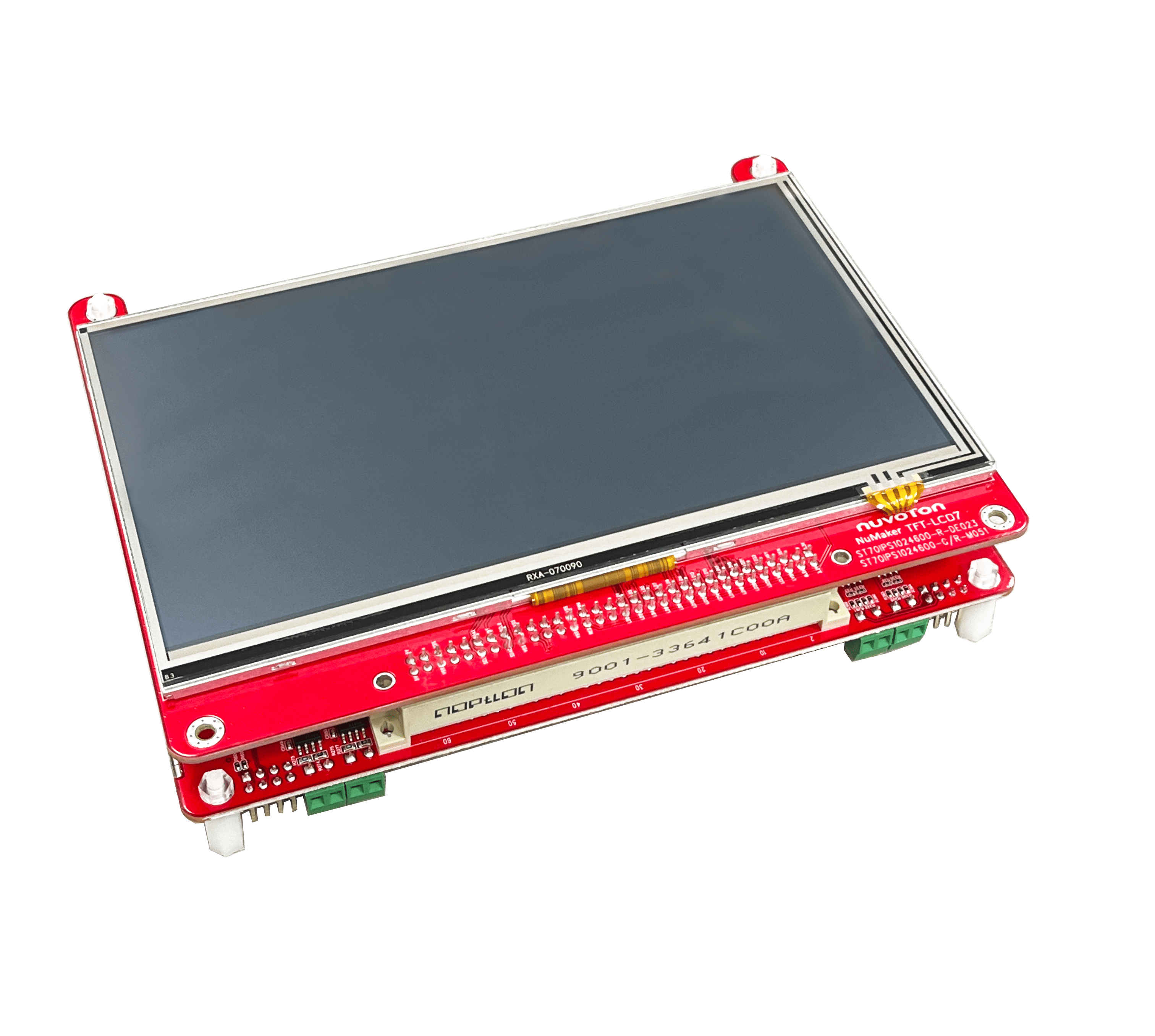 The NuMaker-HMI-MA35D1-A1 is an evaluation board for Nuvoton NuMicro MA35D1 series microprocessors, and consists of two parts: a NuMaker-HMI-MA35D16AJ2 main board and a 7” TFT-LCD daughter board. The main board integrates core components to simplify the system design, based on MA35D16AJ87C (BGA312 package, and stacking a 512 MB DDR), PMIC power solution, a 16 GB eMMC, and two Gigabit Ethernet. The NuMaker-HMI-MA35D1-A1 has rich peripherals such as 2 sets of Gigabit Ethernet, USB2.0 high-speed host and device, 2 sets of CAN-FD, and SPI, I2C, UART, RS-485 serial communication ports for users to facilitate the evaluation in HMI and industrial control, home appliances, 2-wheel cluster, medical device, new energy applications, Machine Learning (ML) or your creative applications.