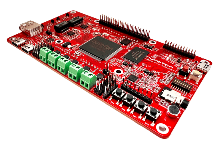 The NuMaker-IoT-MA35D1-A3 evaluation board provides the Ethernet and connectivity features of Nuvoton NuMicro® MA35D1 series microprocessors (MPUs), based on MA35D16FJ87C (LQFP-EP 216- Pin package, and stacking a 512 MB DDR). The NuMaker-IoT-MA35D1-A3 includes rich peripherals such as one set of Gigabit Ethernet, one set of Megabit Ethernet, high-speed USB2.0 Host and device, one set of SD2.0 in Micro SD slot, four sets of CAN FD, one RS-485 and one UART serial communication ports. Furthermore, the NuMaker-IoT-MA35D1-A3 provides discrete power supply to be the reference design. It also provides compatible headers with Raspberry Pi and Arduino UNO for minimizing effort in connecting popular sensors and modules to the system. Based on these features, it helps user to facilitate the evaluation in IIoT Edge Gateway, Smart Building, Smart Agriculture, T-Box, 4G/5G Base Station, or your creative applications.